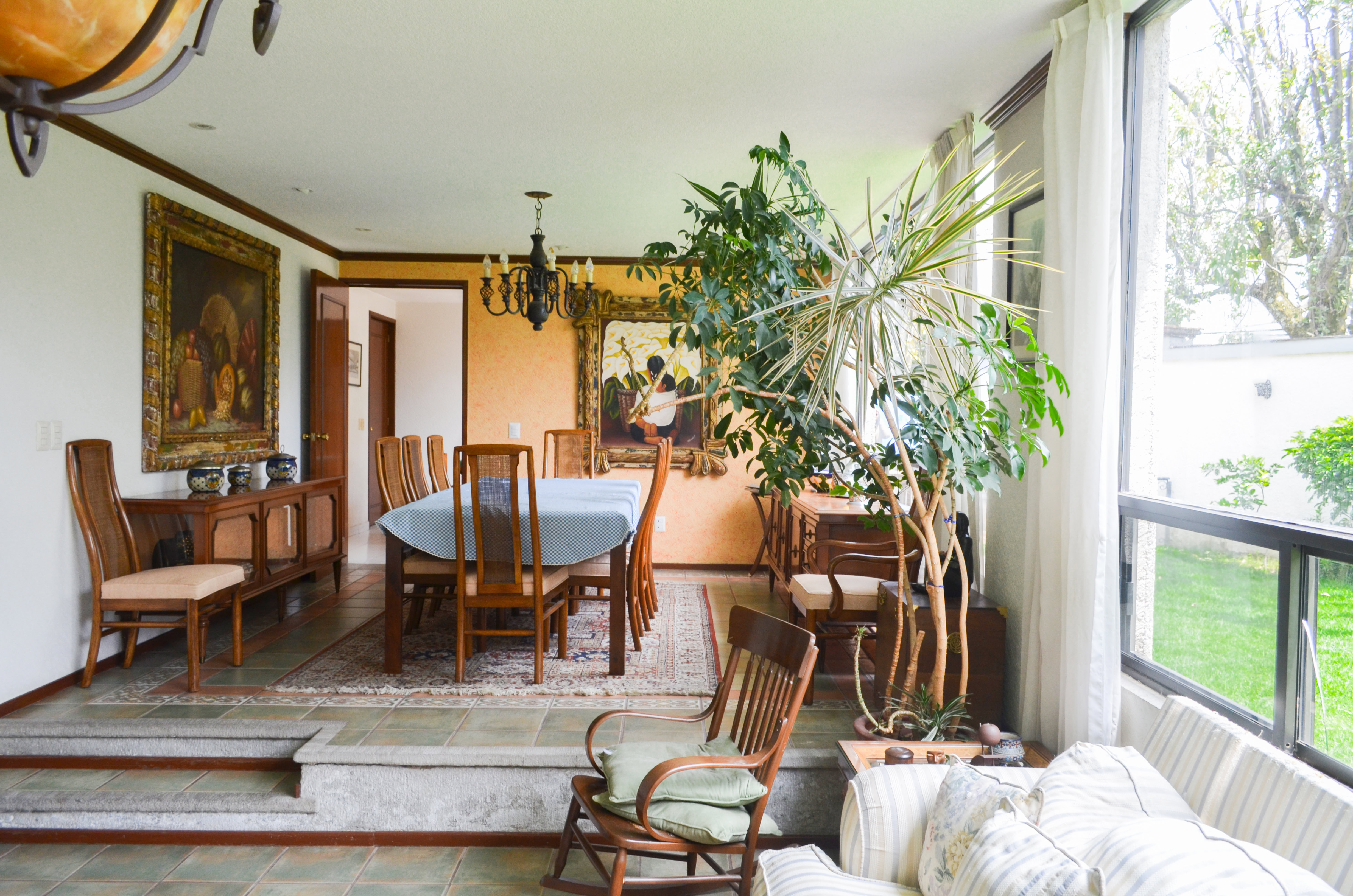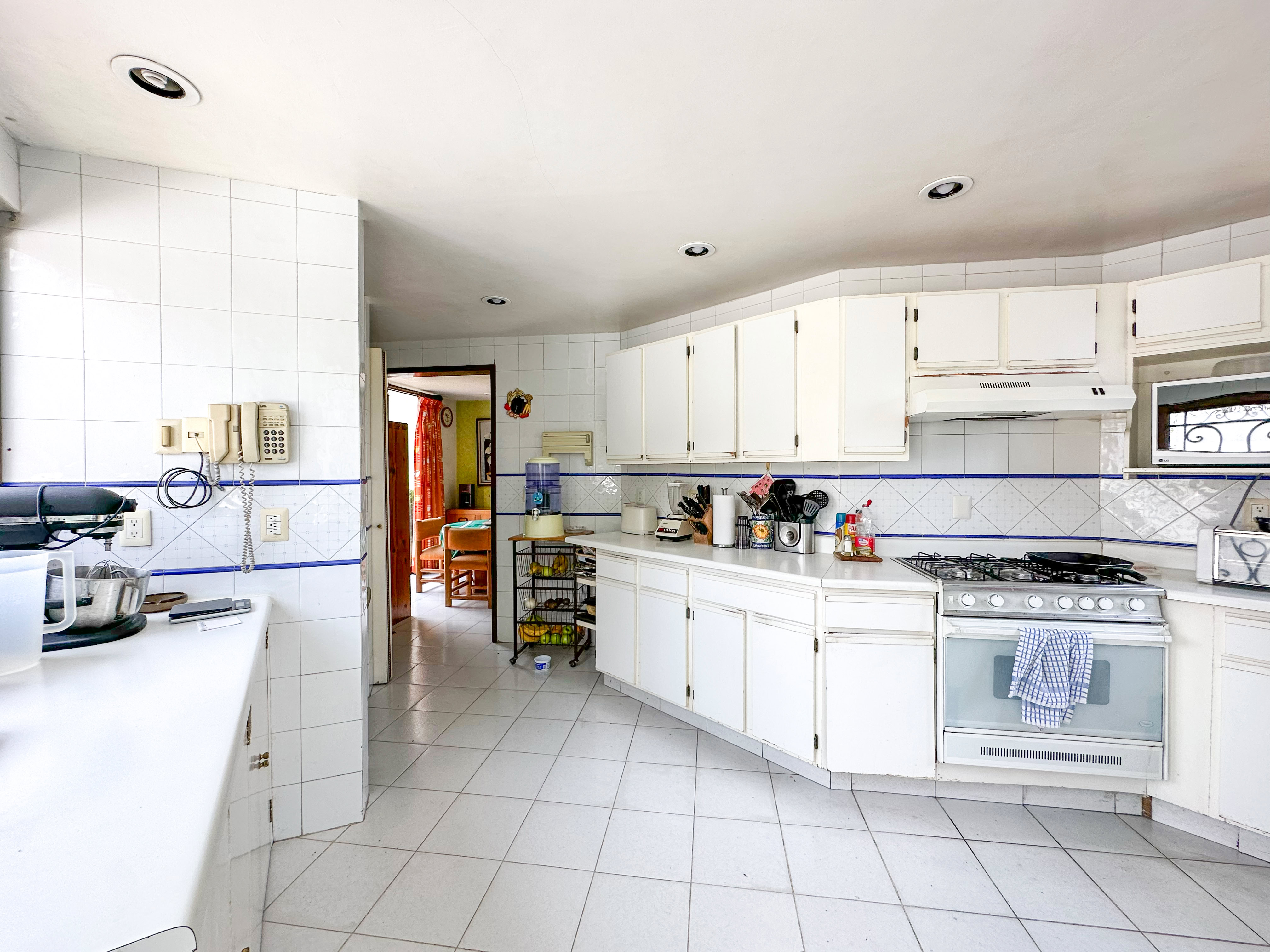 La propiedad integra un recibidor acogedor, sala, comedor y antecomedor, todos con una espectacular vista al jardín, que aporta luminosidad creando un ambiente luminoso y armonioso. Baño de visitas. La cocina es amplia y funcional, perfecta para quienes disfrutan de la gastronomía y el entretenimiento.